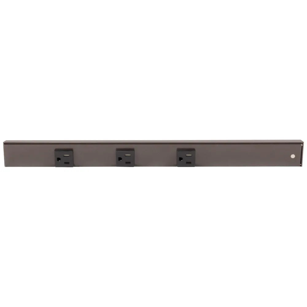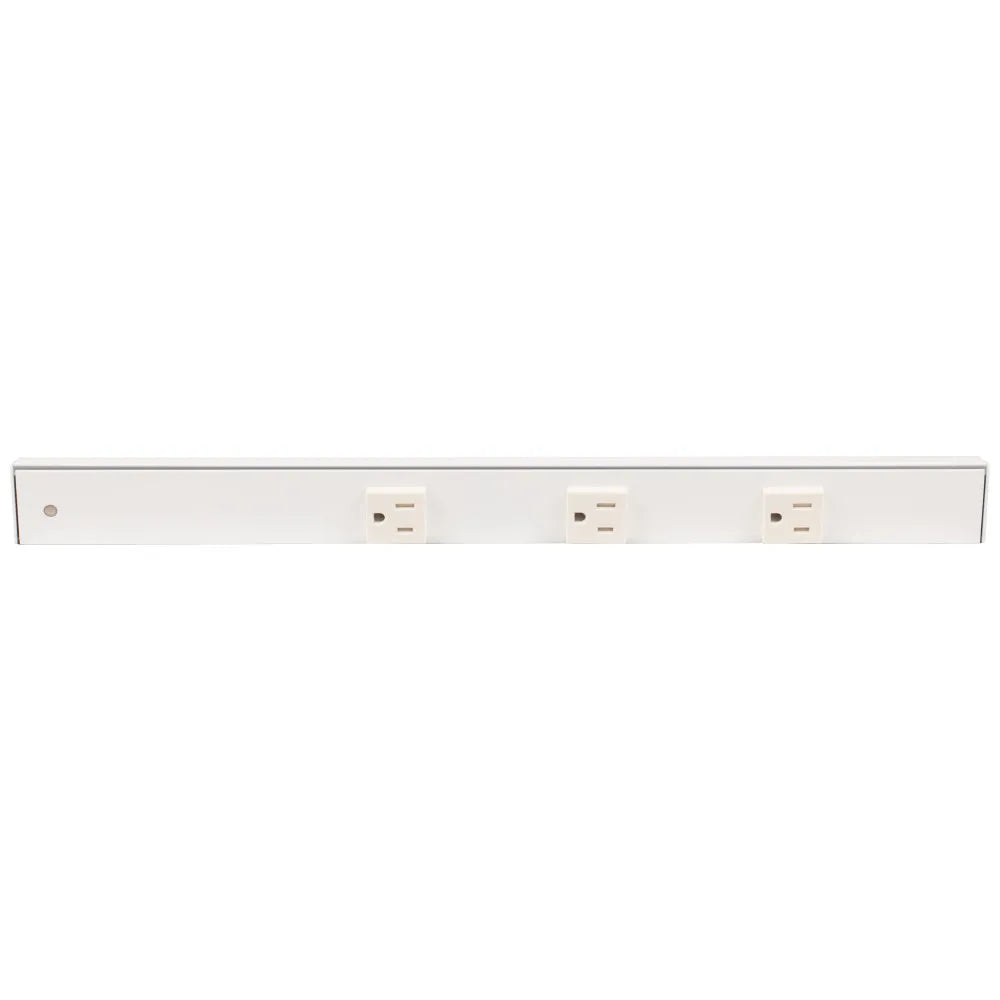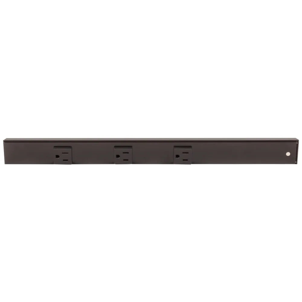The patented 18", 3 plug, Slim Angle Power Strip mounts under cabinets and is an ideal alternative to standard outlets that are cut into tile, glass, wood panels, metal and other solid surfaces. The fixture is easily hidden, while the angle offers easy access to receptacles. Use under kitchen cabinets, vertically along the sides of a bathroom mirror, on the top of an office desk, in the shop, craft room and home entertainment center.