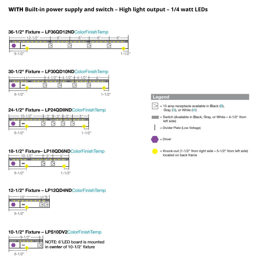 Under Cabinet Power Strip with High-Output LED Light in Black